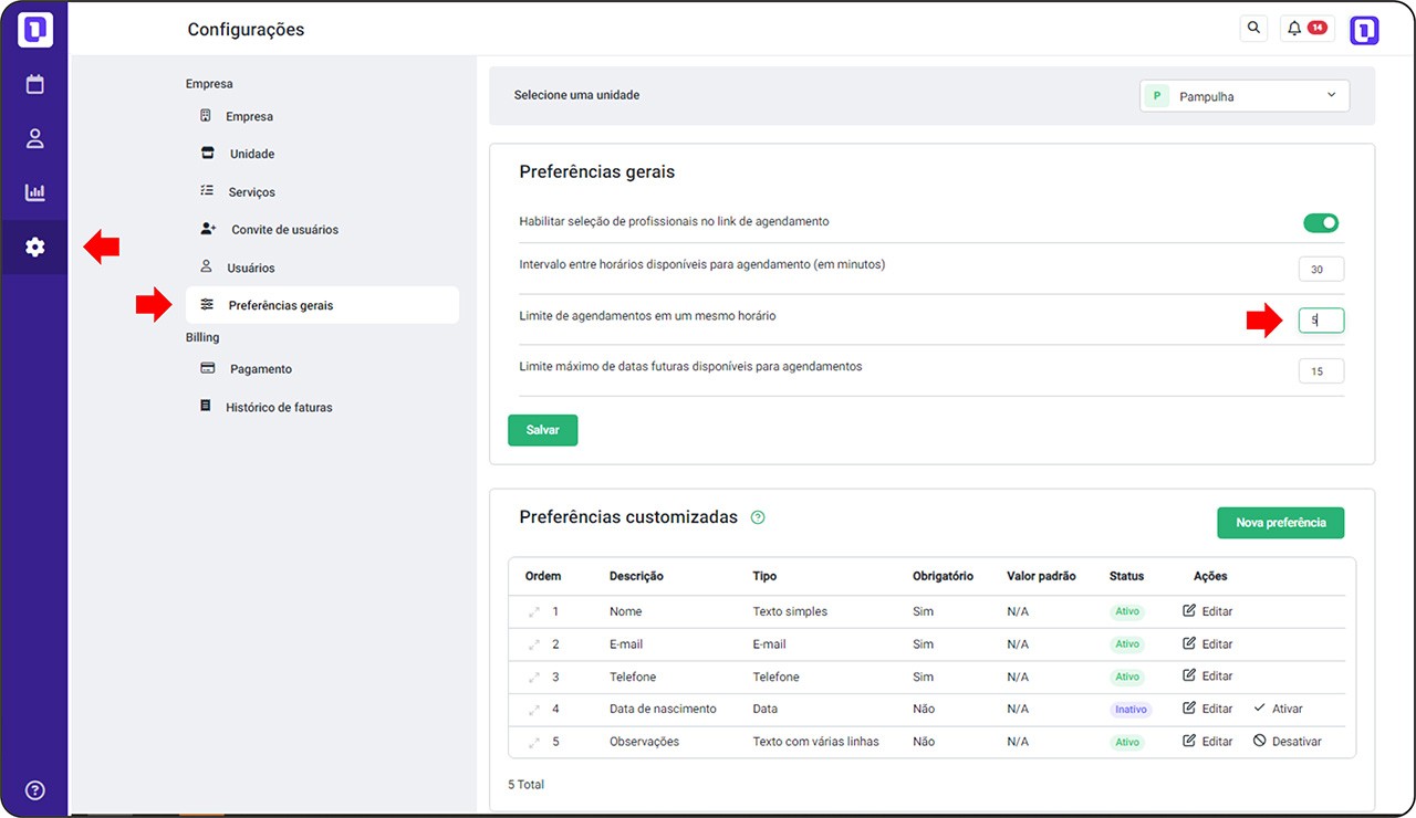 Para adaptar a quantidade de agendamentos simultâneos de acordo com suas necessidades pessoais, siga estes passos: