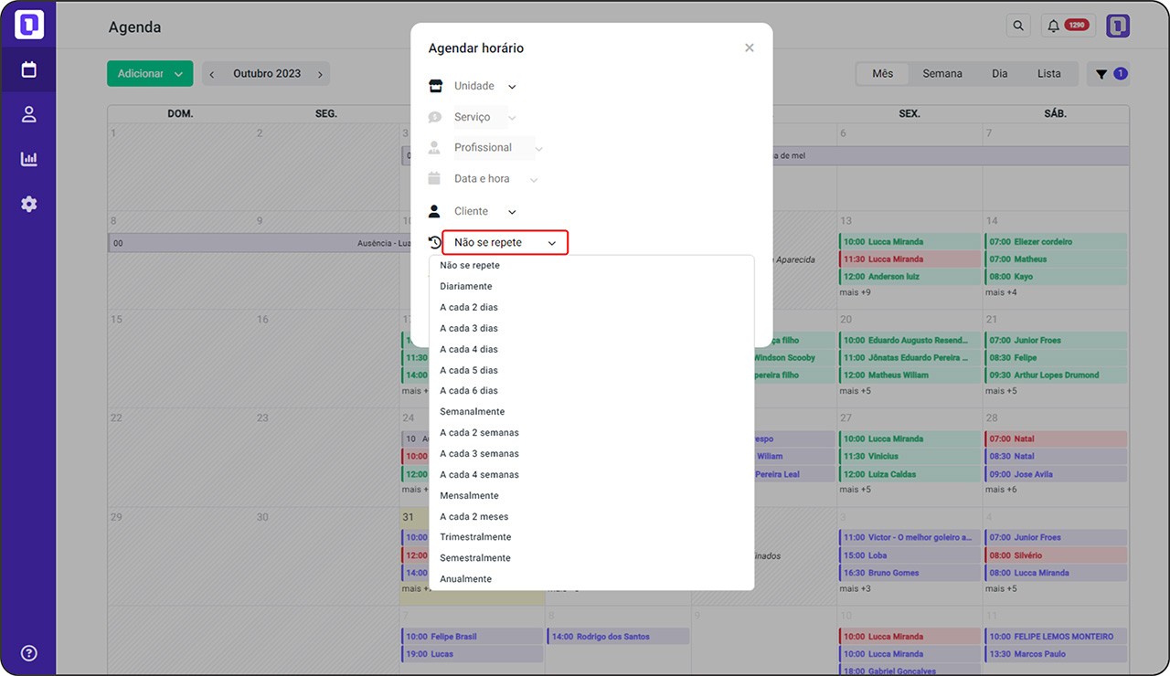Você pode agendar automaticamente compromissos mensais, semanais ou personalizados, adaptados às suas necessidades.