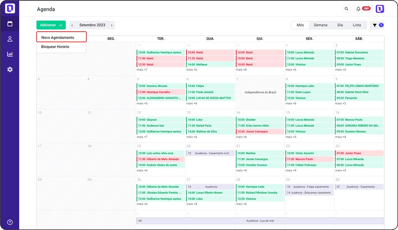 Na pagina inicial “Agenda”, clique no botão “Adicionar” em seguida selecione “Novo Agendamento”.
