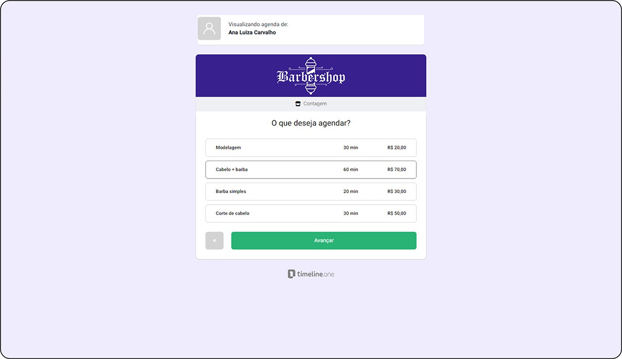 O cliente escolhe o serviço que deseja agendar a partir de uma lista de opções.
