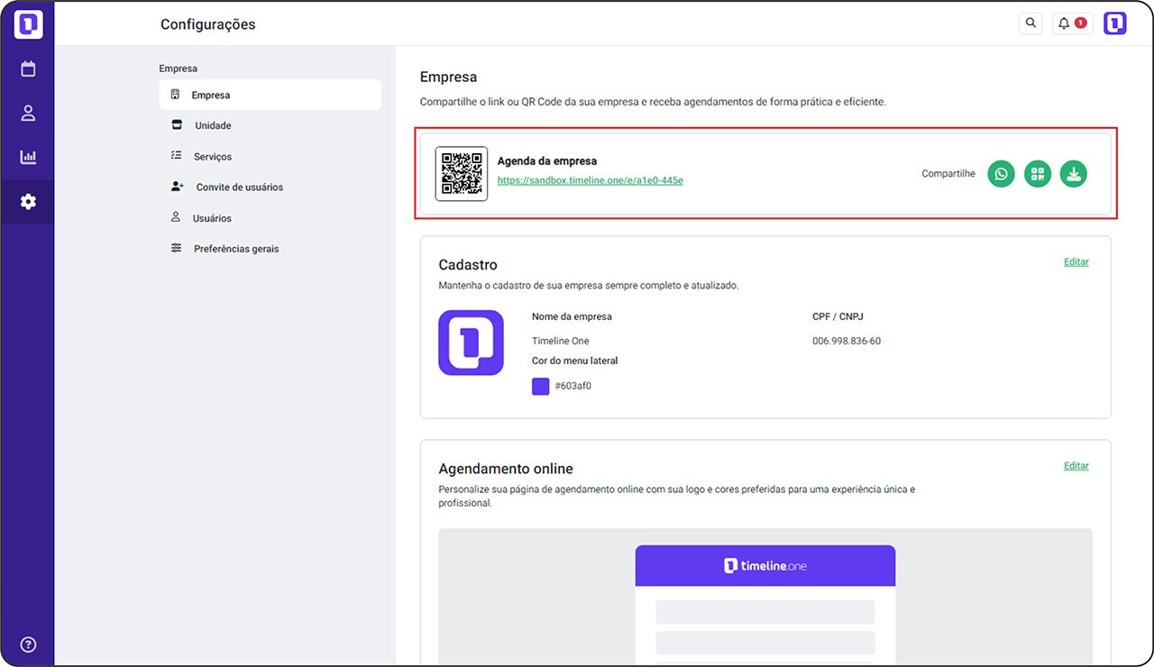 Você poderá enviar o link via WhatsApp, disponibilizá-lo na bio nas redes sociais ou um QR code para seu cliente incie o processo de agendamento.