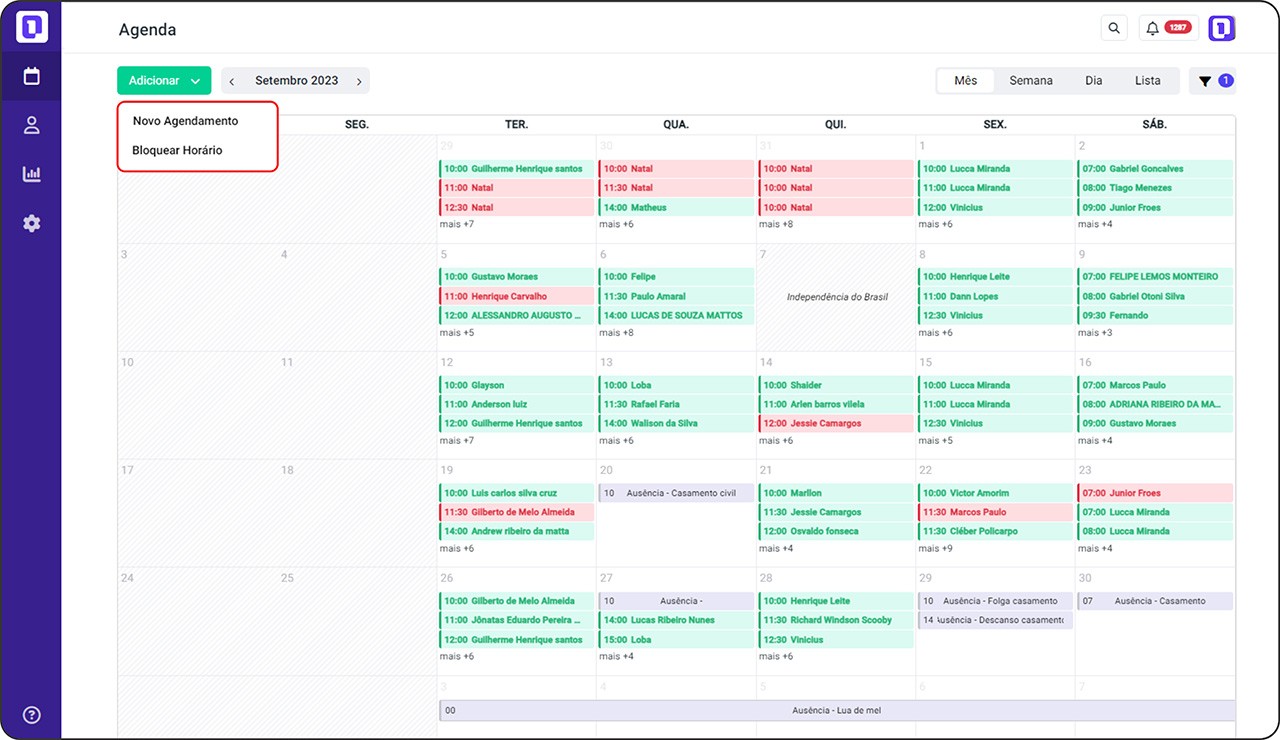 Passo 1 – Novo Agendamento ou Bloqueio de Horário: Comece clicando em ‘Novo Agendamento’ para marcar um novo compromisso ou ‘Bloqueio de Horário’ para reservar intervalos na sua agenda. Você poderá ver mais a respeito no artigo
